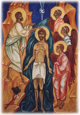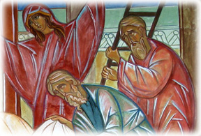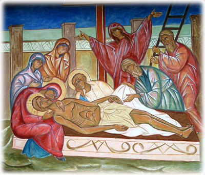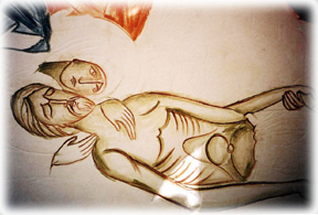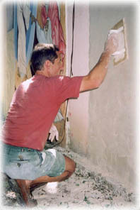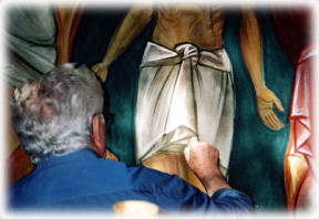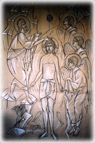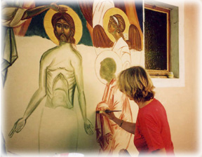 Août 2002 Réalisation de la fresque du Baptême de Jésus (côté sud).