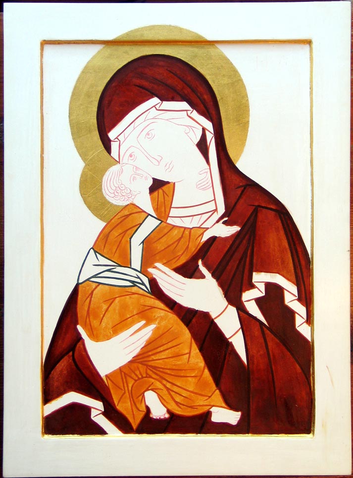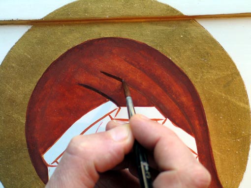 Once the modelling is finished on the whole maphorion, retrace the drawing with a mixture of the modelling colour with a touch of blue or a hint of black... |
